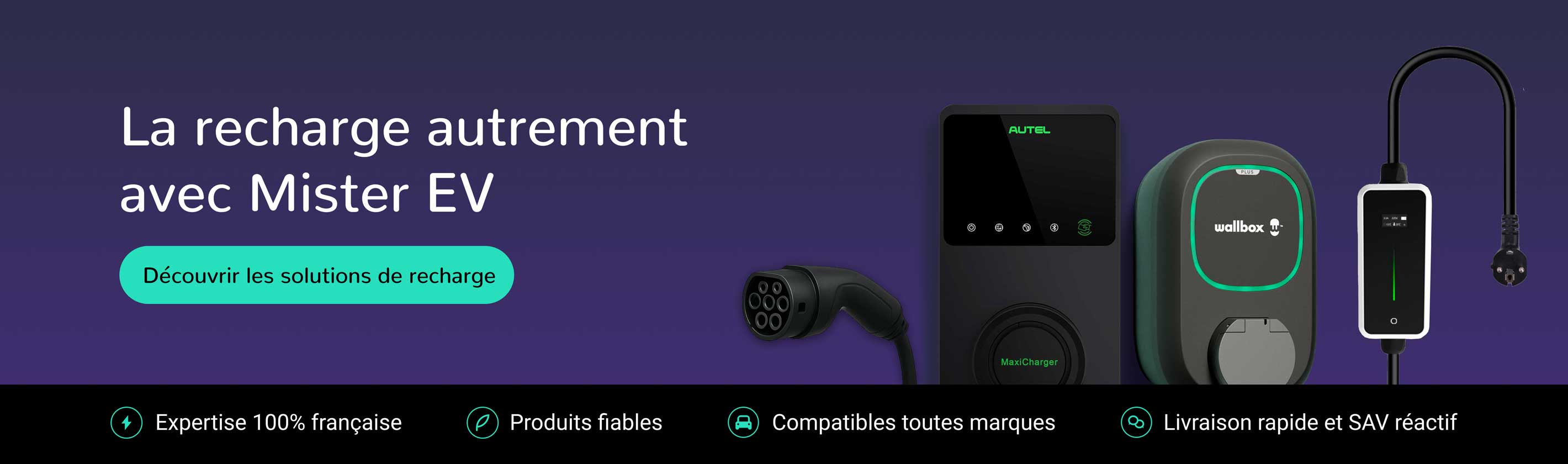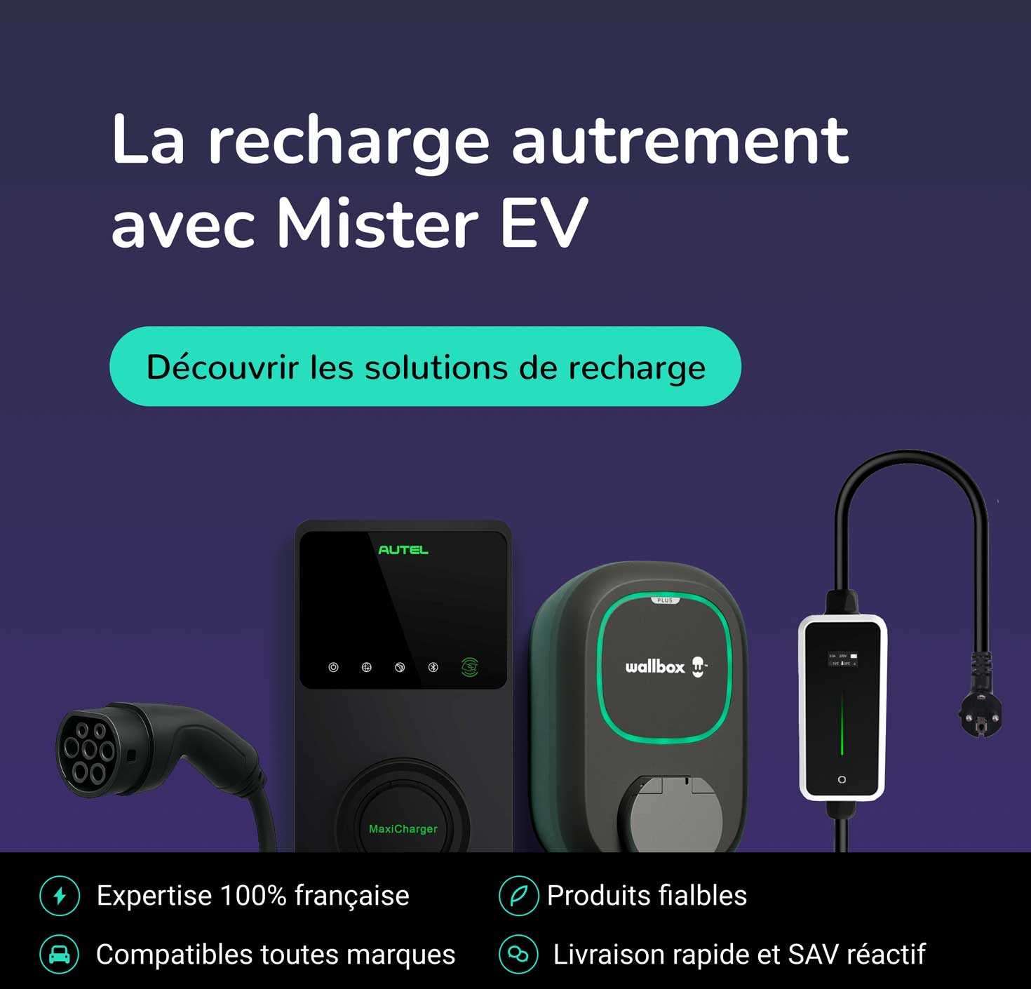 Mister EV est votre expert 100% français de vente en ligne de solutions de recharges multimarques.